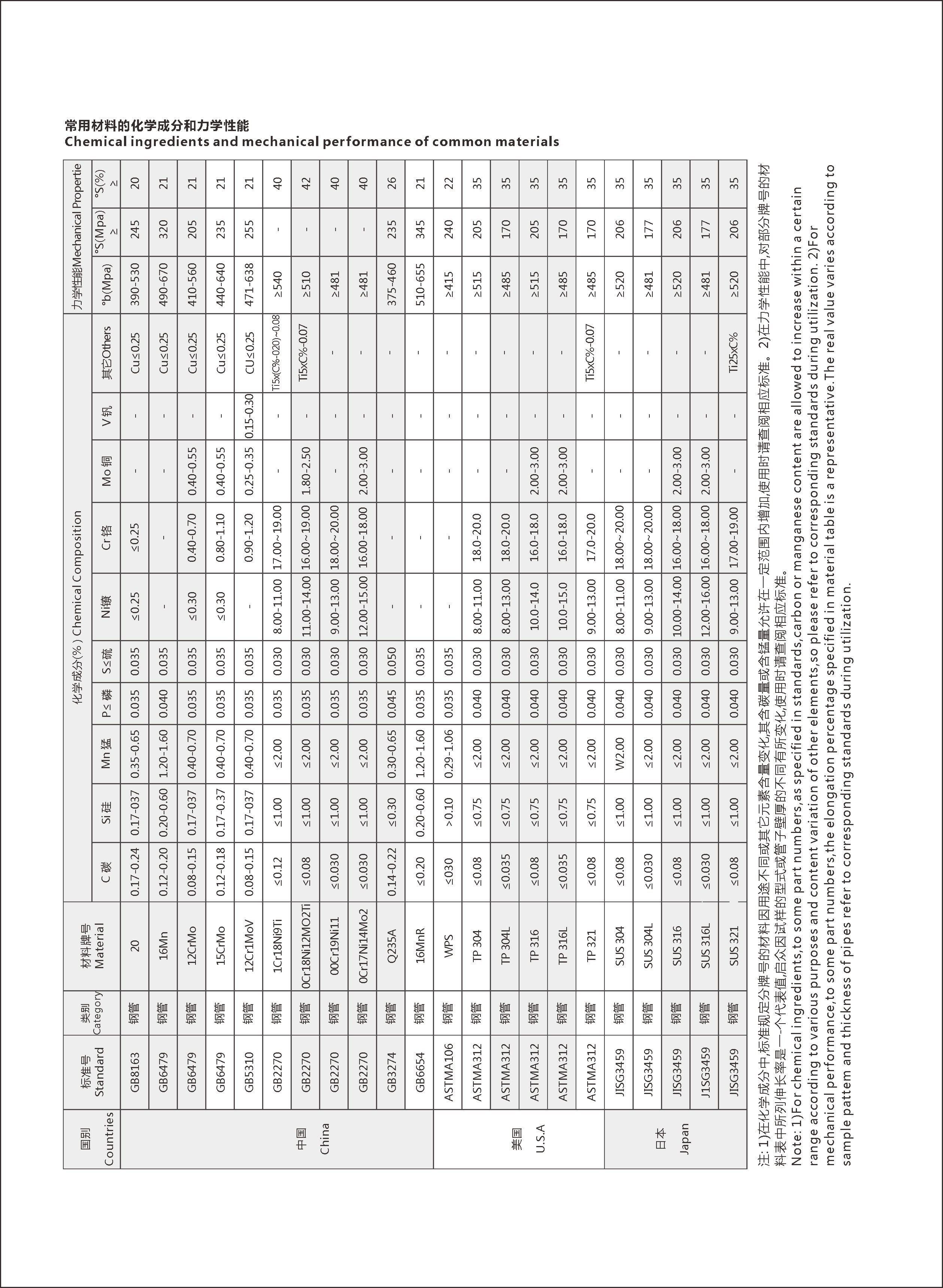 常用材料的化學(xué)成分和力學(xué)性能