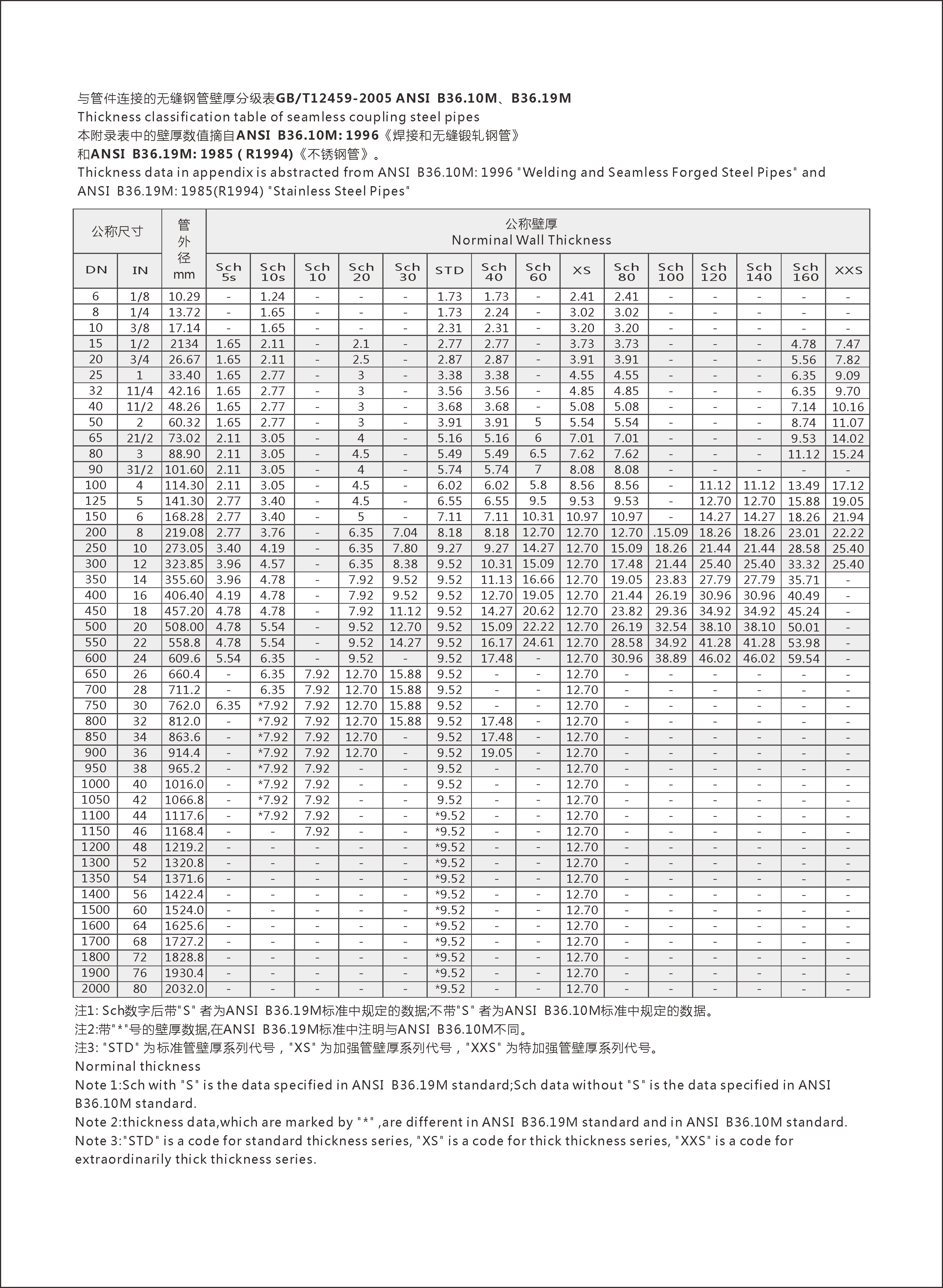 壁厚表